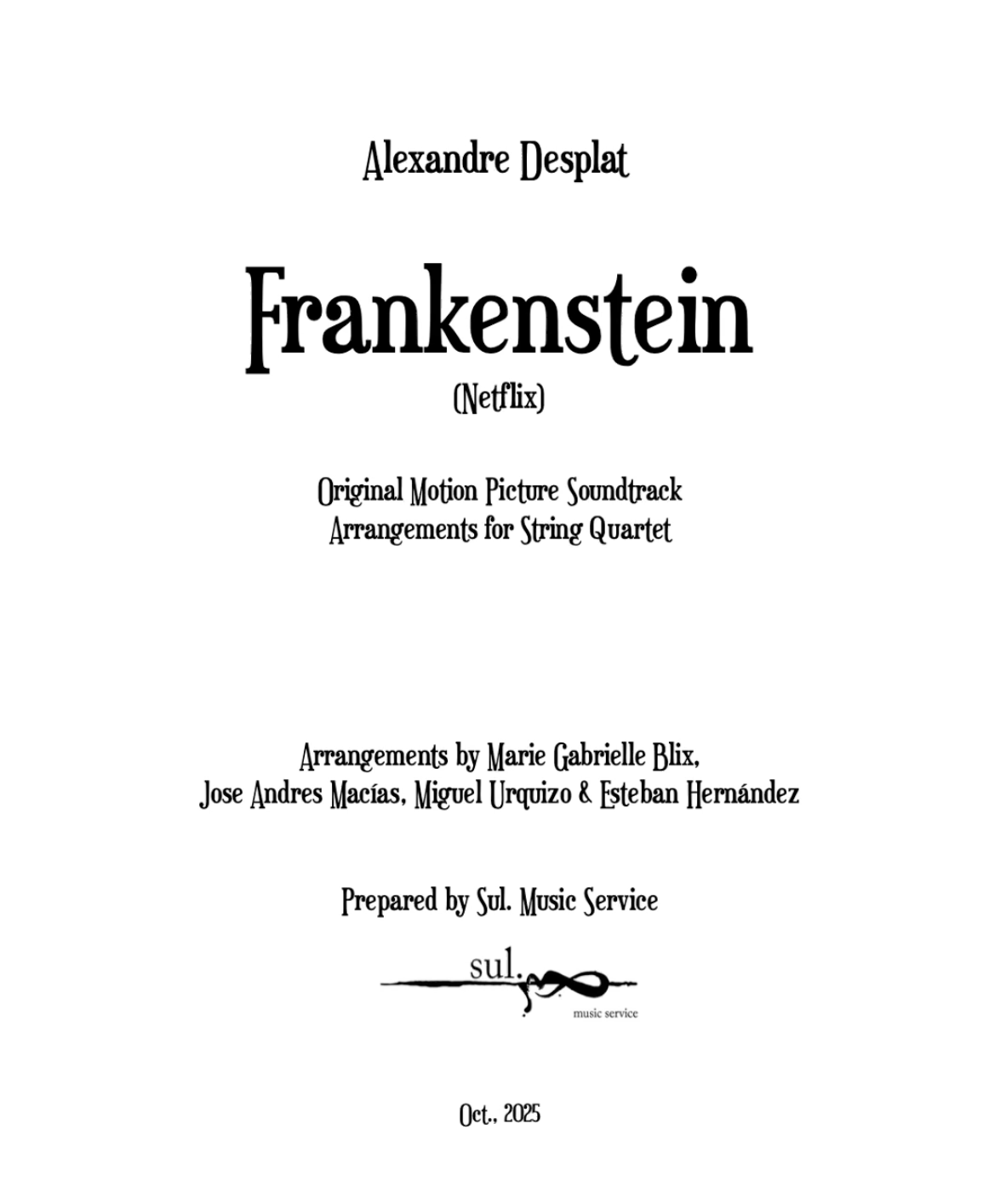 Commissioned by Lemon Posh Branding to create 20 string arrangements of the Original Motion Picture Soundtrack Frankenstein. Performed live at Netflix LAT´s event celebrating the premiere of the acclaimed film, alongside director Guillermo del Toro, and actors Elordi and Isaac.